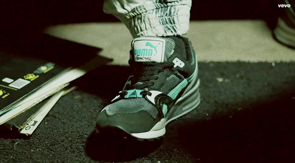 Set in 1990s New York, Gorgon City wear 1990 reissue Puma trainers as they DJ at the packed out club night into the early hours.