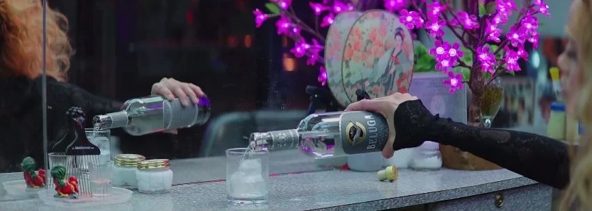 Jillian sips Beluga Vodka at her dressing table between extravagant outfits and the different bright neon spaces of New York City at Night.