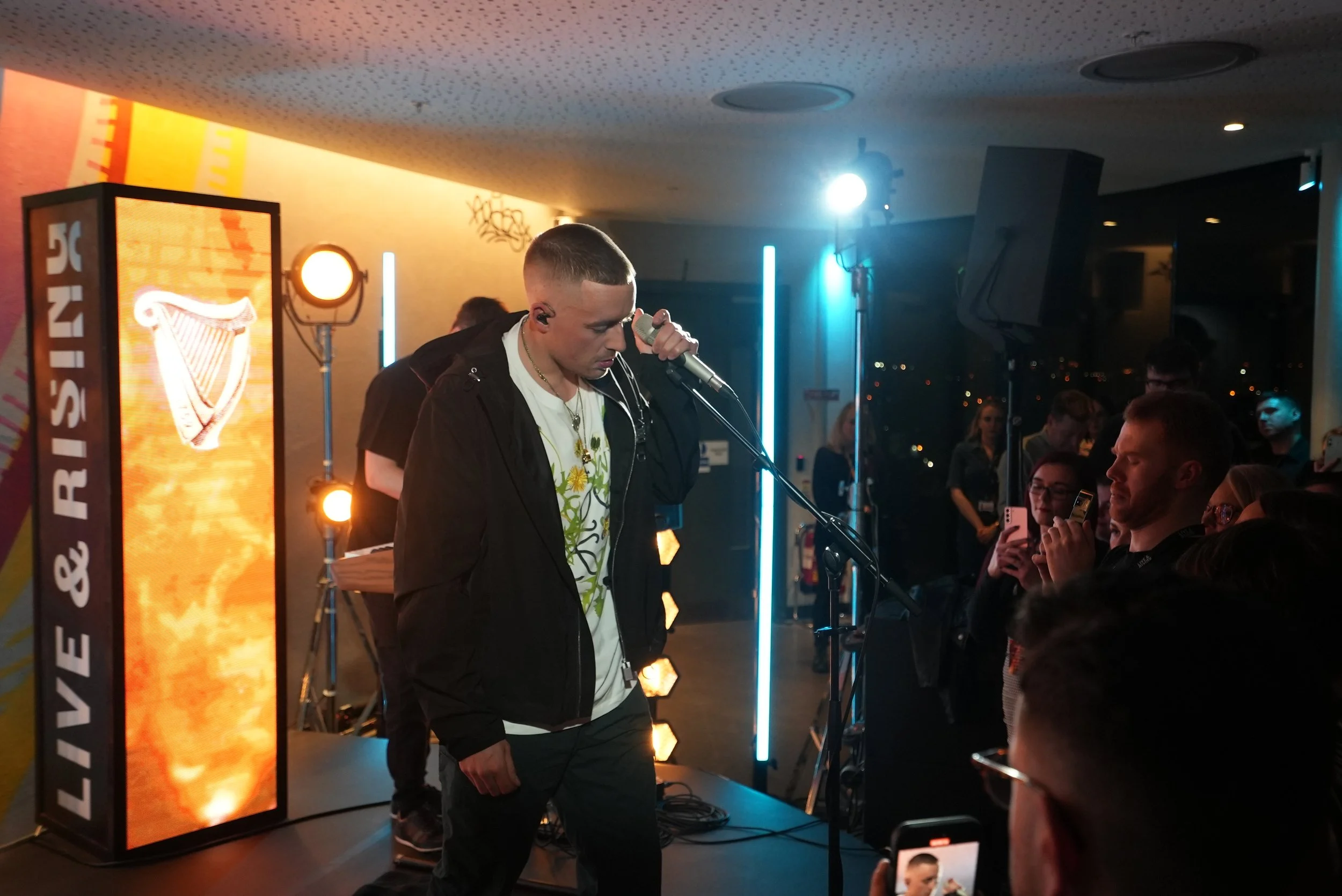 We helped launch the programme in spectacular style by enlisting global superstar Dermot Kennedy with a world-first performance on the roof of the Guinness Storehouse in Dublin. The Home of Guinness provided an epic backdrop with views across Dublin and the Liberties beyond. Our crew captured the moment on film so that it could be used as the PR launch announcing Live & Rising to key media outlets and across socials.